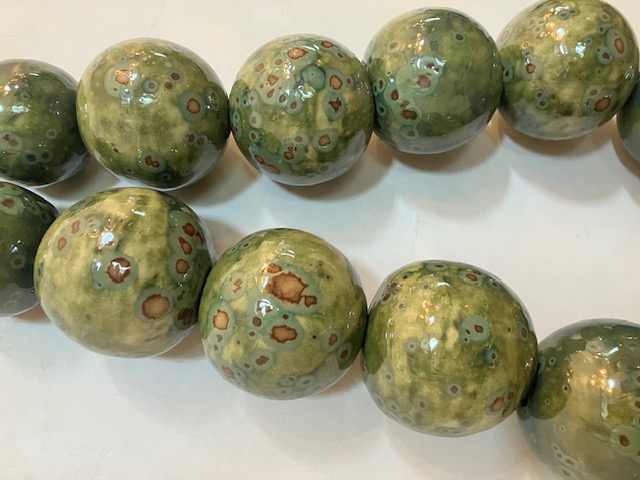 Magnifique collier de perles en céramique. Il s'agit d'une pièce unique, à fixer/exposer contre un mur comme un tableau ou une oeuvre d'art.